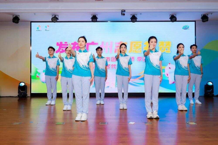 “为你,更精彩——”清亮的口号声中,现场志愿者们亮出整齐划一的手势,抬臂时掌心与左胸保持半拳之距,前伸时拇指与视线平齐,复位时伴有谦和微笑……活动现场首次发布了“广州志愿礼赞”,这一礼赞也即将在十五运会和残特奥会赛事及城市志愿服务场景上进行应用。
